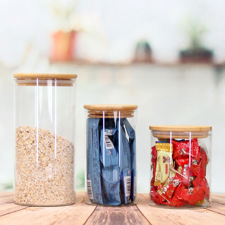 Αυτό το κάλυμμα από μπαμπού με ελαστικό δαχτυλίδι σφράγισης, κυλινδρικό σχήμα, γυάλινο βάζο υψηλής βαροσιλικότητας είναι κατάλληλο για διάφορα σενάρια, είτε πρόκειται για αποθήκευση τροφίμων, αποθήκευση ποτών,διακοσμητική επίδειξη ή αποθήκευση εργαλείων κουζίνας, μπορεί να προσθέσει ευκολία και ομορφιά στη ζωή σου. |